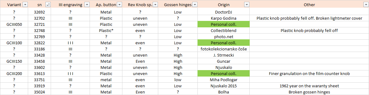 In the links provided above you can find model descriptions and my own classification of the variants. Any help is highly appreciated – if you own a camera with Ghetaldus lens, please, share the serial number and the variant with me via the email address below.